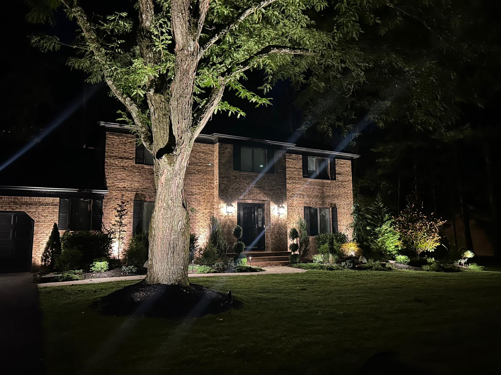 At Unique Outdoor Lighting, we take pride in transforming outdoor spaces with innovative lighting solutions, and our recent project in Long Hill, NJ, showcases our expertise in creating stunning landscape lighting designs. Our mission was to illuminate both the architectural elegance of the home and the surrounding landscape while accentuating the natural beauty of a majestic weeping willow tree as its centerpiece.